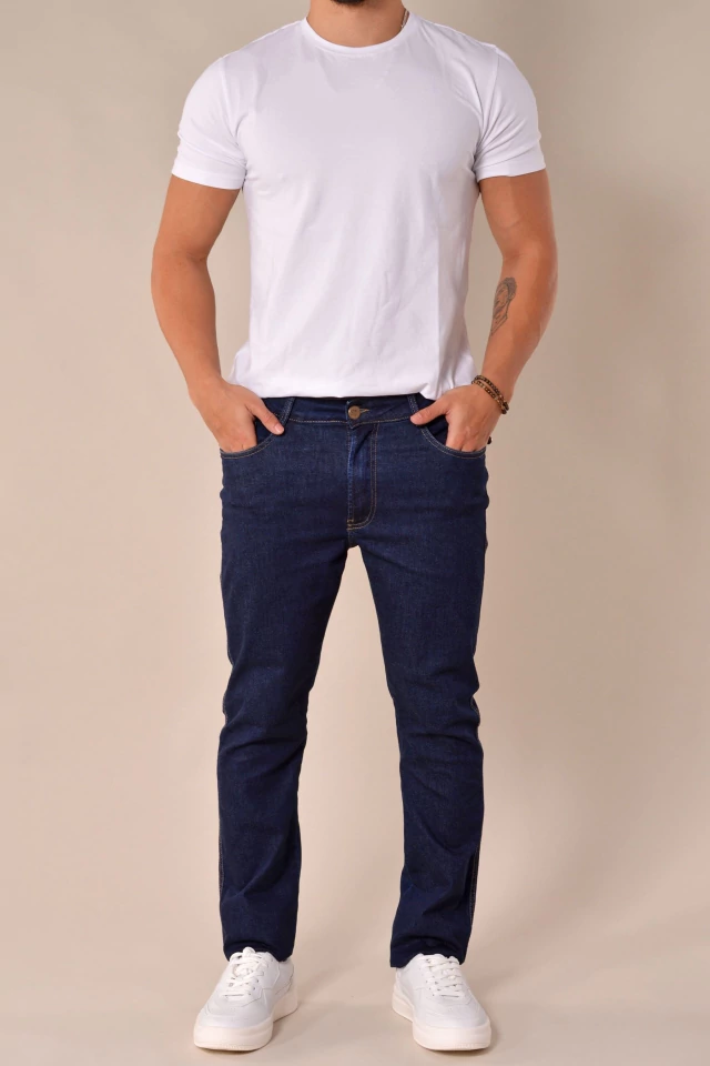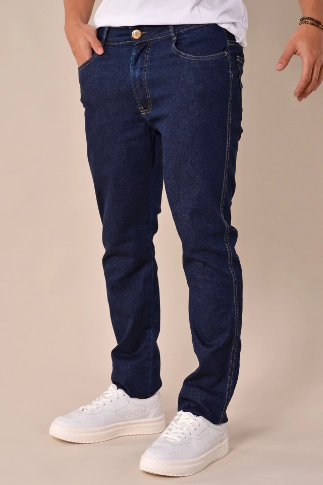 Calça jeans masculina em tecido triblend com toque de lycra, garantindo conforto extra para o dia a dia. Com modelagem slim, moderna e alinhada ao corpo, é perfeita para elevar o estilo dos seus looks com praticidade. Possui bolsos frontais funcionais, dois bolsos traseiros centralizados e fechamento por zíper e botão personalizado. A cintura conta com presilhas para cinto, trazendo versatilidade e acabamento impecável.